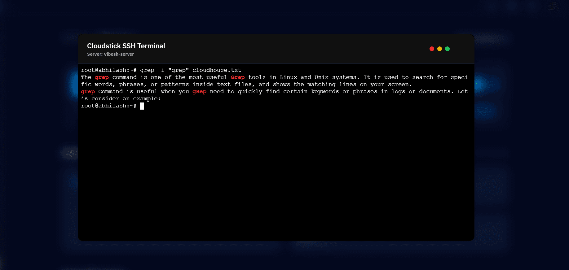 The grep command is a powerful and essential tool for searching text within files on Linux systems. By understanding its basic syntax and commonly used options, you can quickly locate specific information, troubleshoot issues, and analyze logs more efficiently. Whether you are a beginner or an experienced Linux user, mastering grep will significantly improve your productivity and command-line skills.