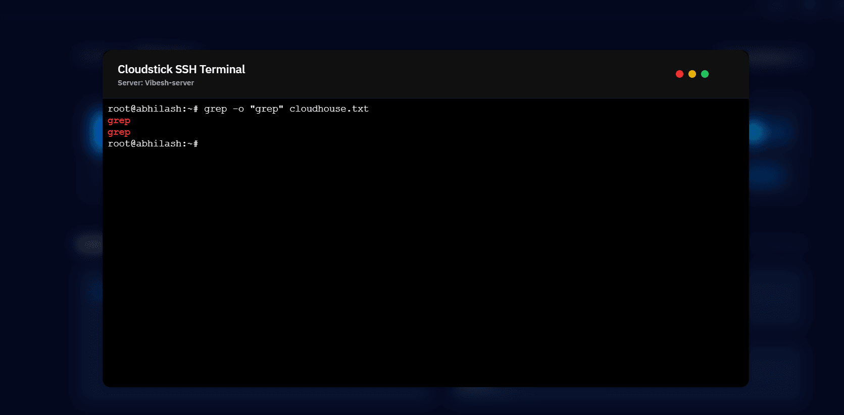 grep -o "grep" cloudhouse.txt