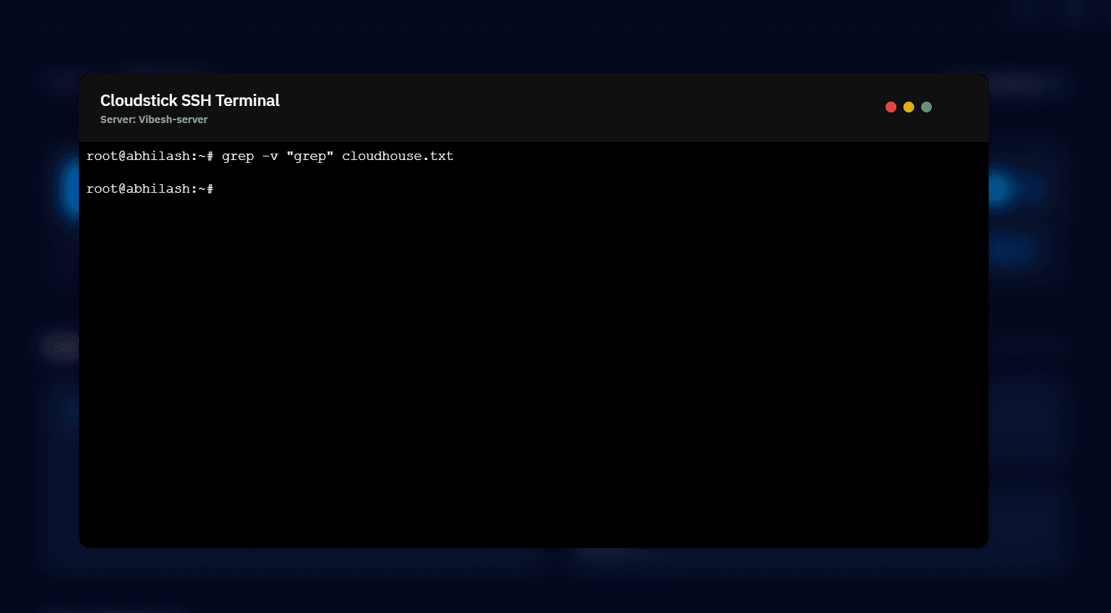 grep -v "grep" cloudhouse.txt